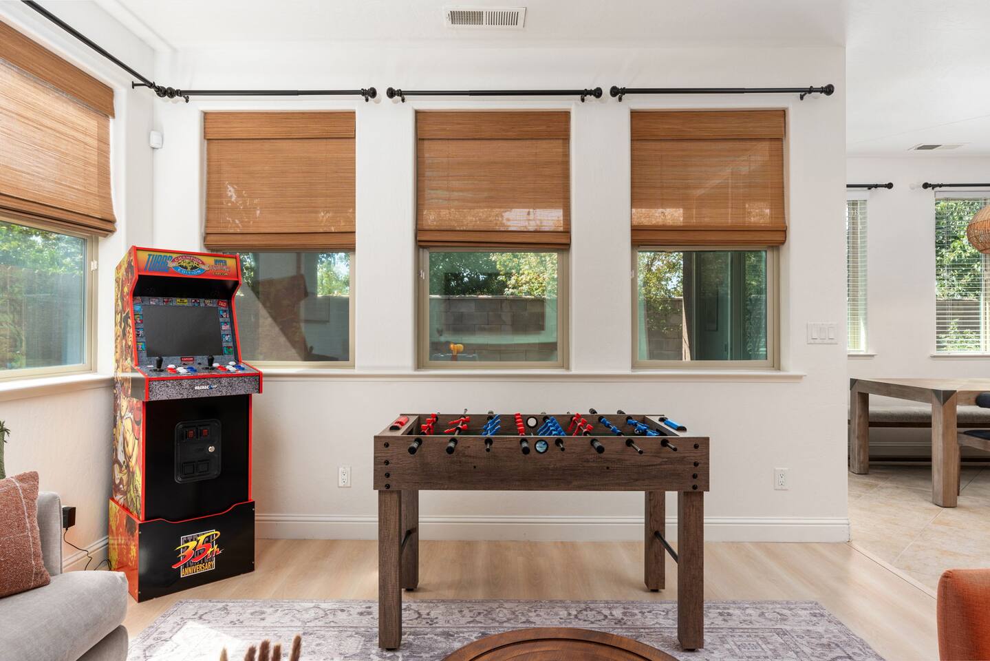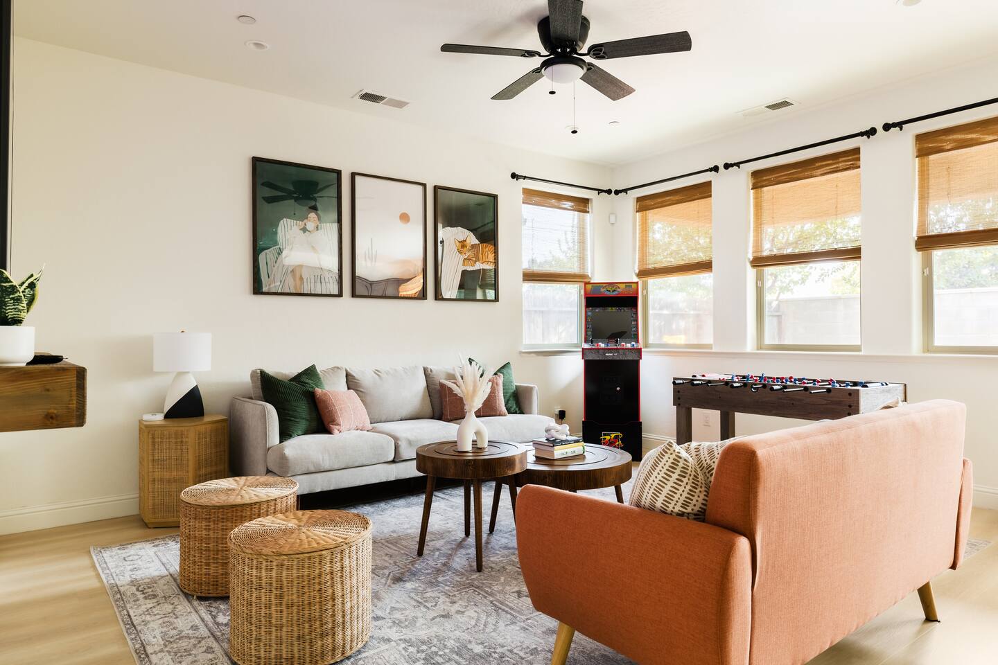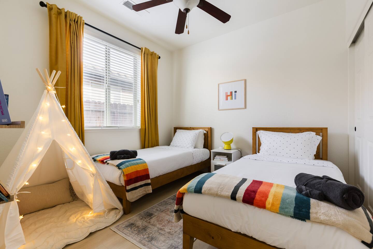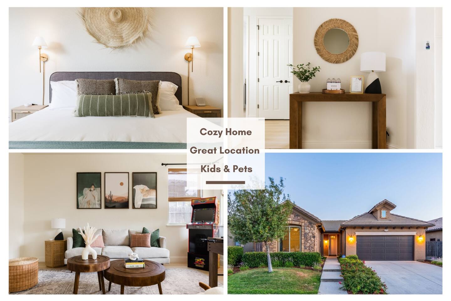 ✔ Best neighborhood in Fresno — Safe & Quiet ✔ Family-friendly — Pack ’n Play, high chair, and kids’ dinnerware ✔ Dedicated workspace ✔ Fast Wi-Fi (362 Mbps) ✔ In-house laundry ✔ 3 mins to gas station, restaurants & convenience store ✔ Free driveway and street parking ✔ Darkening curtains + blinds in all bedrooms ✔ Mini golf, arcade, foosball & more ✔ Dog-friendly — Crate and feeding bowls provided 1) Accommodation Details Sleeps up to 8 guests: - 1 King Bed - 1 Queen Bed - 2 Twin Beds - Additional Queen-Size Air Mattress or Japanese Futon Mattress - Extra blankets and pillows stored in the master bedroom walk-in closet for your convenience Family Friendly: - Pack-n-Play - High Chair - Kids' Dinnerware - Sound Machine - All outlets covered for safety - Kitchen: Fully equipped for all your cooking needs - Wi-Fi: High-speed fiber internet - Dedicated working space Entertainment: - 3 Roku TVs (65-inch, 55-inch, and 43-inch) - Golf Putting Green - Arcade Game Machine - Foosball Table - Board Games - Cozy reading corner for kids Dog Friendly: - Cozy dog bed - Feeding station with two bowls - Dog Crate Coffee & Tea Station: - Drip Coffee Machine with various ground coffee options - Keurig equipped with K-cup pods - A selection of complimentary tea bags Parking: Two-car driveway parking plus free street parking in front of the house. NO ACCESS to the garage. Laundry: On-site washer and dryer Cleanliness: Professionally cleaned with regular pest control and landscape maintenance 2) About the Location Local Parks: - Copper River Park: 0.6 miles - Todd Beamer Park: 1.7 miles - Woodward Park: 3.6 miles Shopping Centers: - RiverView Shopping Center: 2.7 miles - River Park Shopping Center: 5.3 miles - Park Crossing Shopping Center: 4.7 miles Golfing Options: - Copper River Country Club: 0.8 miles (membership required) - Fort Washington Golf & Country Club: 2.1 miles (membership required) - Valley Golf Center: 8.9 miles - Dragonfly Golf Club: 11.5 miles We look forward to welcoming you!
